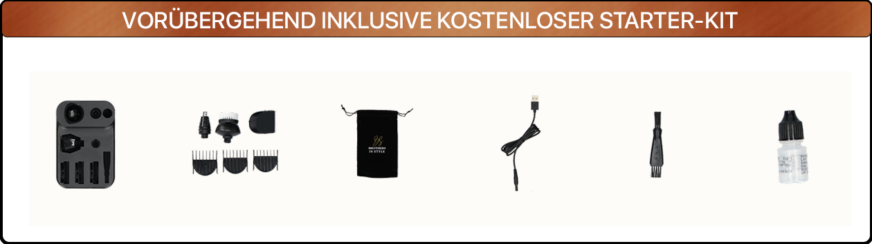 - Ladestation, Pflegeöl, Reinigungsbürste & USB-Kabel